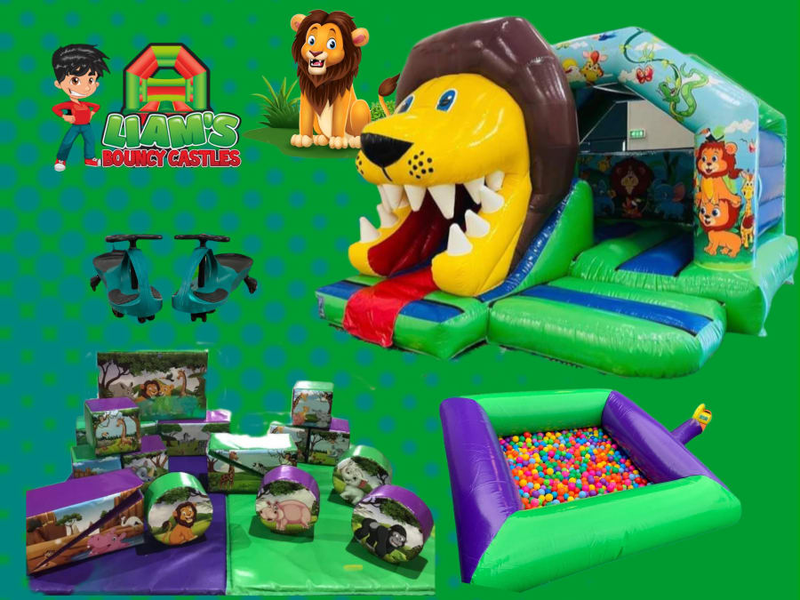 This Package includes the 3D Jungle Front Slide Combi, 7ft x 7ft Green/Purple Ball Pond, Green Didi Cars 2 and Soft Play Jungle