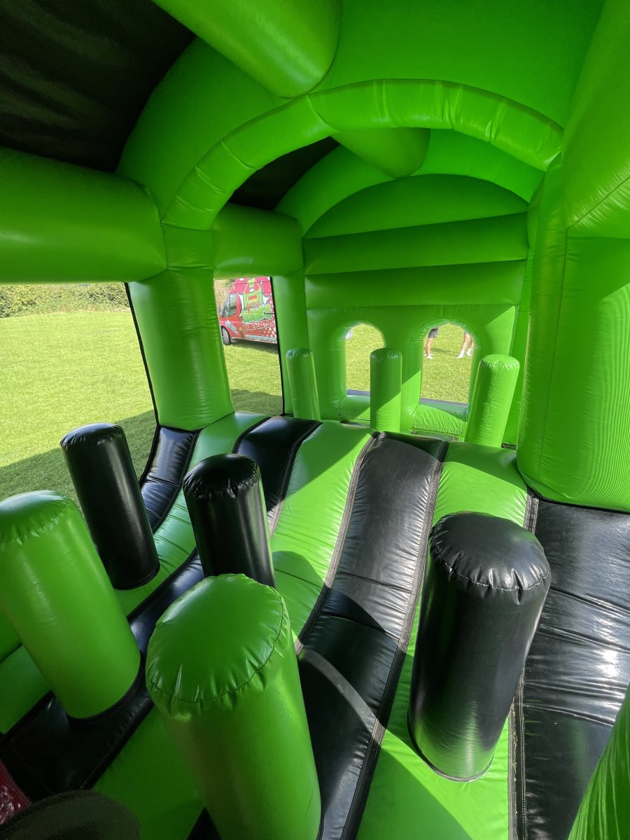 This is our 52ft long toxic themed obstacle course which is slightly bigger than our 2-Part Obstacle Course 45ft Long it also has a 10ft platform slide which is also much bigger than our other obstacle course.