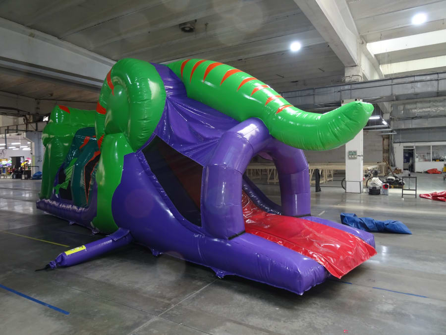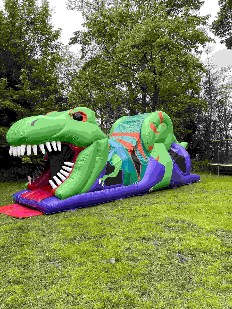Introducing our 3D Dinosaur Fun Run! If your children like dinosaurs then they will love this inflatable, it's very cool unique 3D design is nothing like you've seen before as it gives the inflatable a very realistic look. As you can see from the photos you enter through the dinosaurs mouth then once your in it has a fun run area on the inside which includes different types of biff bash followed up with a small climb to the 8FT platform slide sending you sliding out the other side.