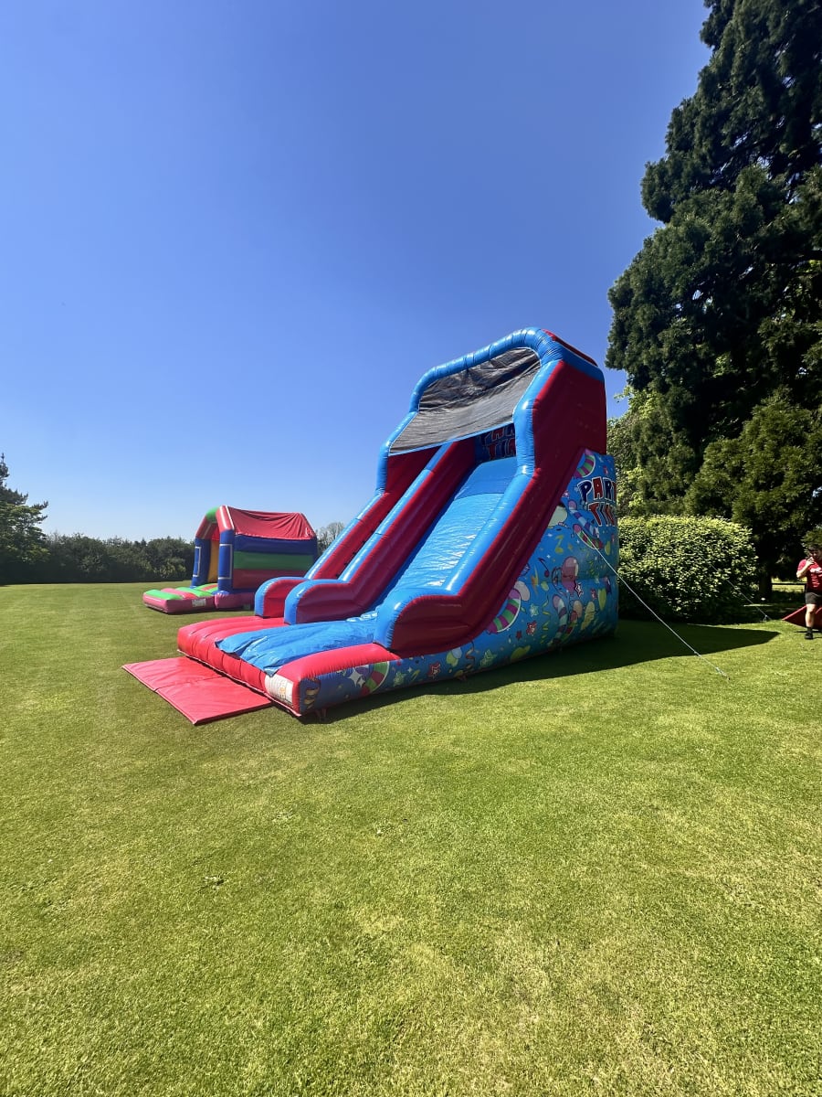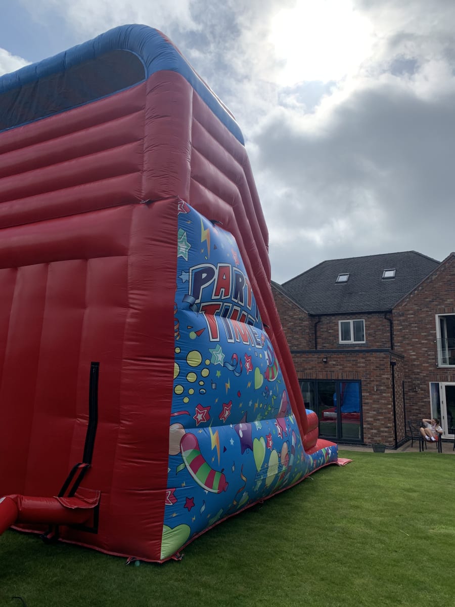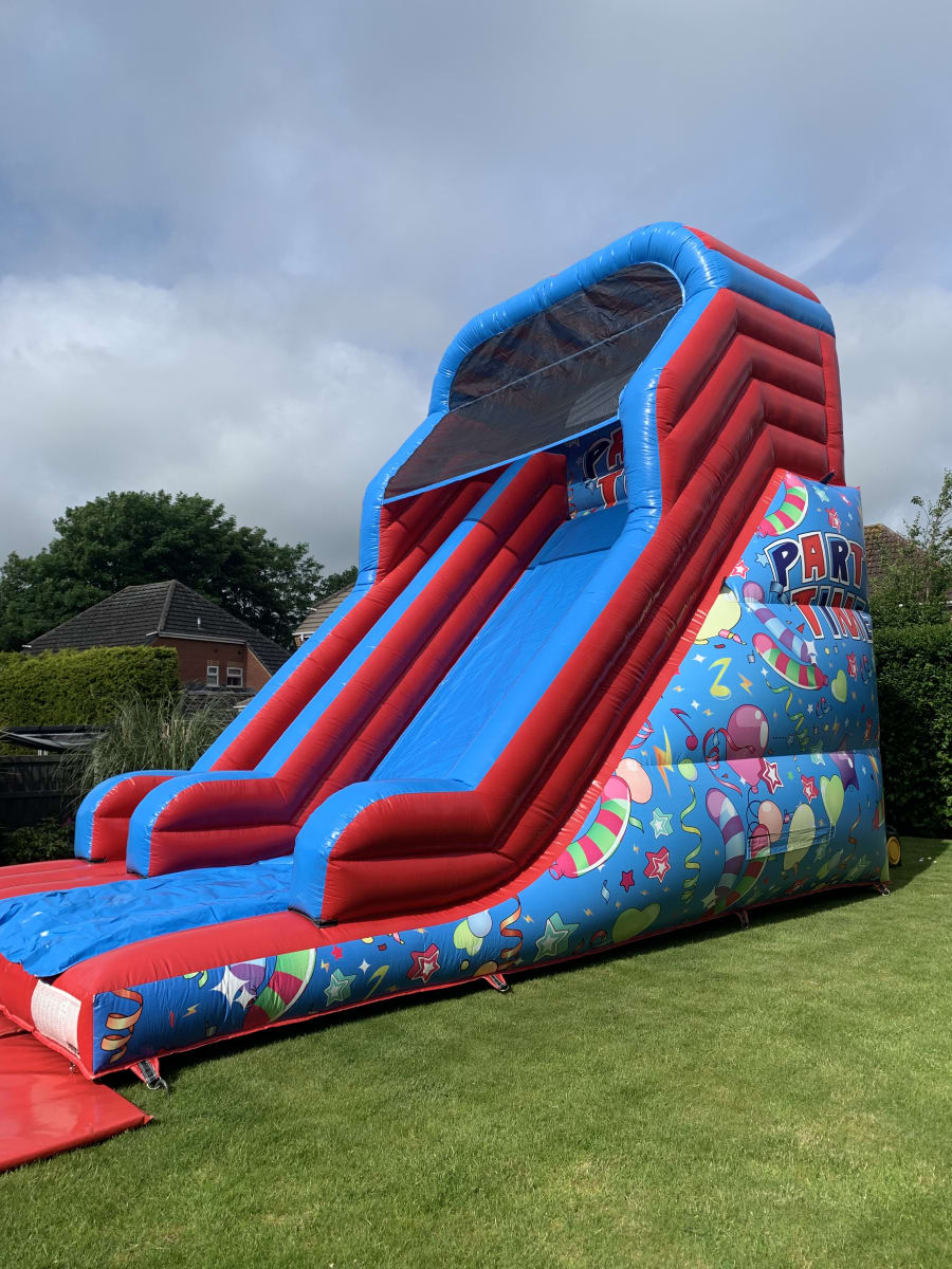 Our Platform Party Time Mega Slide is the pinnacle of party entertainment, featuring a thrilling 12ft platform that promises an exhilarating slide experience. With a floor space covering 15ft in width and 20ft in length, it offers ample room for guests to slide to their heart's content.