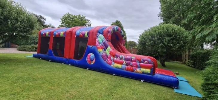 If this inflatable is going to be set up outdoors, it must be on a flat grass surface, in a secure and private enclosed garden with access to a power socket for our extension leads. Please ensure the area is large enough with no obstacles, toys, objects, or animal mess prior to delivery.