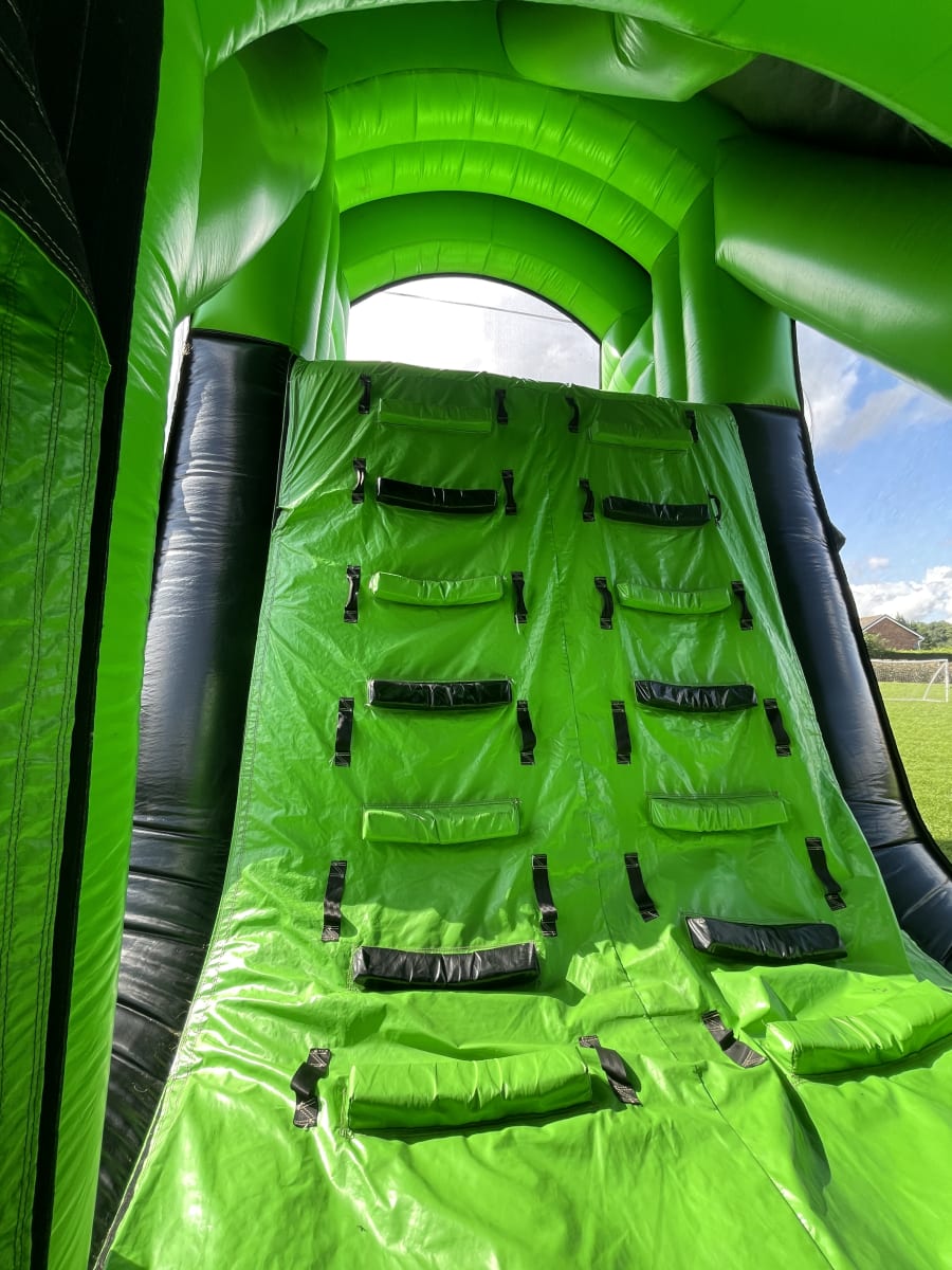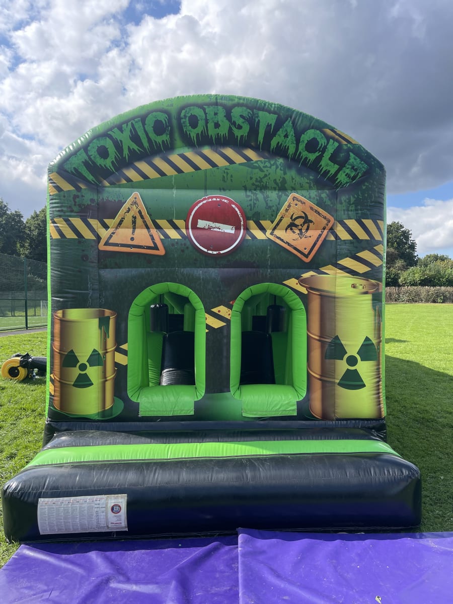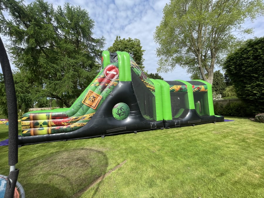 This is our 52ft long toxic themed obstacle course which is slightly bigger than our 2-Part Obstacle Course 45ft Long it also has a 10ft platform slide which is also much bigger than our other obstacle course.